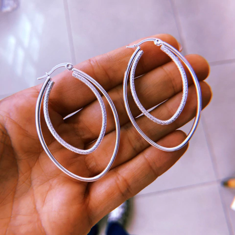Argollas doble oval (3,5 cm) - acero blanco (cod 14)