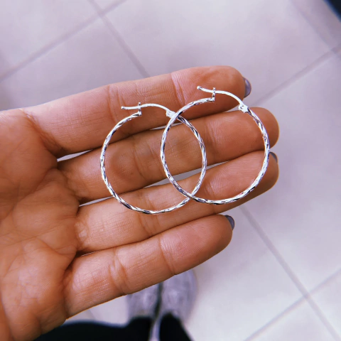 Argollas facetadas italianas (2,7 cm) - plata 925 (cod 32)