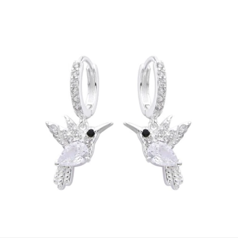 Argollitas colibri cristal 1,2 cm - plata 925 (cod 45)
