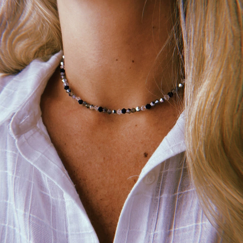 Choker degrade negro - vidrio tallado (35 cm + 2 cm de extensor) (cod 22)