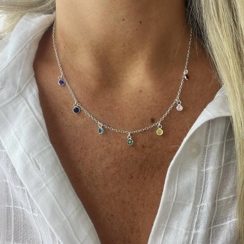 Collar dijecitos multicolor - plata 925 (cod 44) (40 cm + 5 cm de extensor)