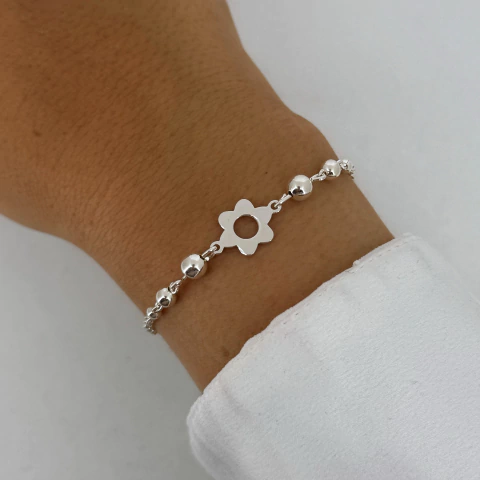 Pulsera flor y 3 bolitas - plata 925 (cod 43) (19 cm)