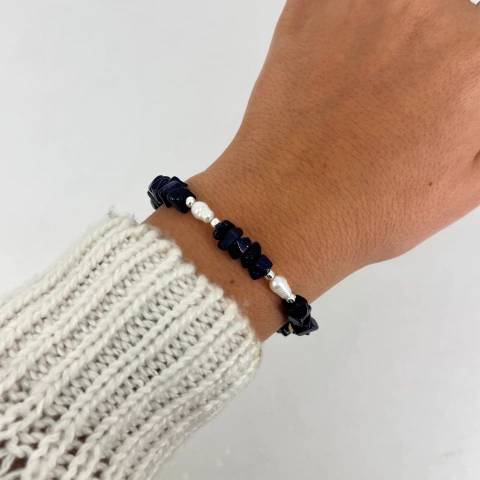 Pulsera mallorca moonstone - piedra natural, perla de rio & plata 925 (cod 56)
